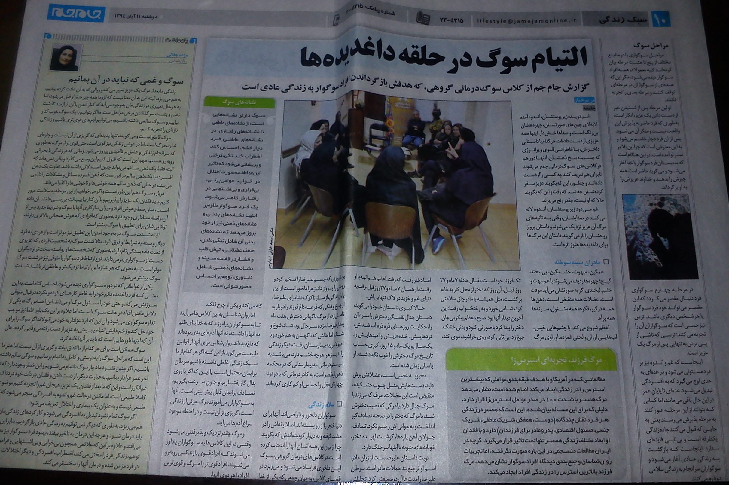 گزارش روزنامه جام جم، دوشنبه 11 آبان 1394 صفحه 10