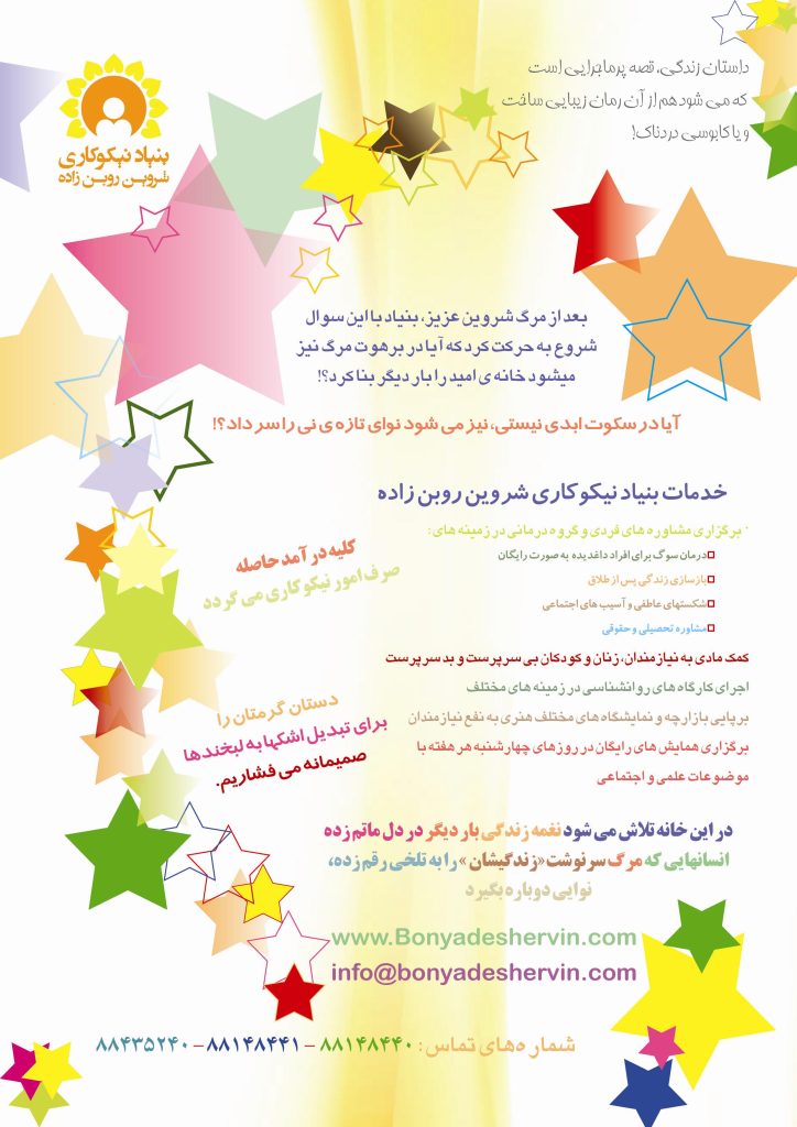 28 سپتامبر اخبار و گزارشات برگزاری جلسات سوگ درمانی . (چهارشنبه هر هفته) مارس 7, 2025 توسط bonyad_admin سکوت گورستان را می شنوی؟ دنیا ارزش دل شکستن را ندارد می رسد روزی که هرگز در دسترس نخواهیم بود خاک آنتن نمی دهد که نمی دهد ... بی خیال ن... ادامه مطلب