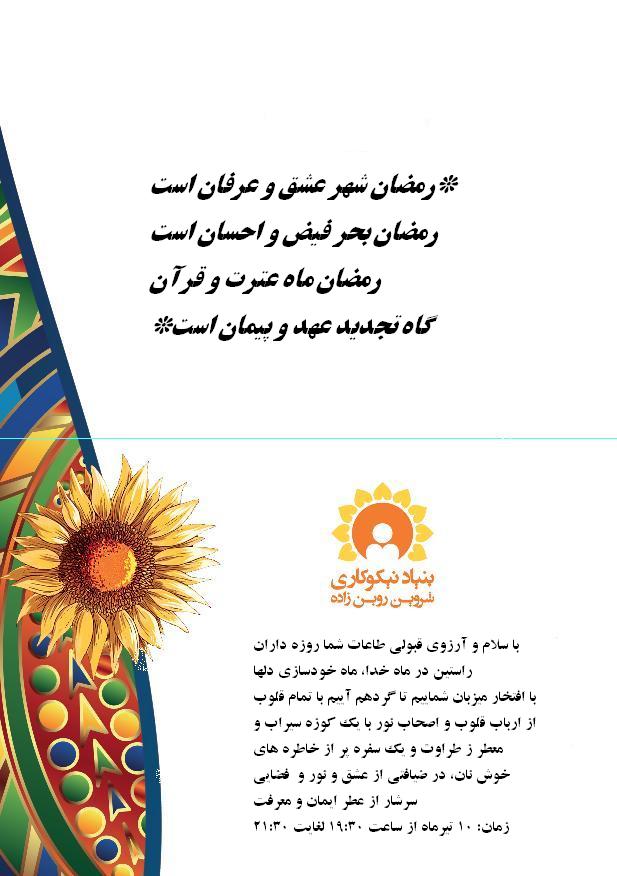 01 جولای اطلاعیه ها دعوتنامه مراسم افطاری مارس 3, 2025 توسط bonyad_admin با عرض تبریک به مناسبت فرا رسیدن ولادت با سعادت امام حسن مجتبی (ع) و روز اکرام و با آرزوی قبولی طاعات و عبادات شما روزه داران راستین در... ادامه مطلب