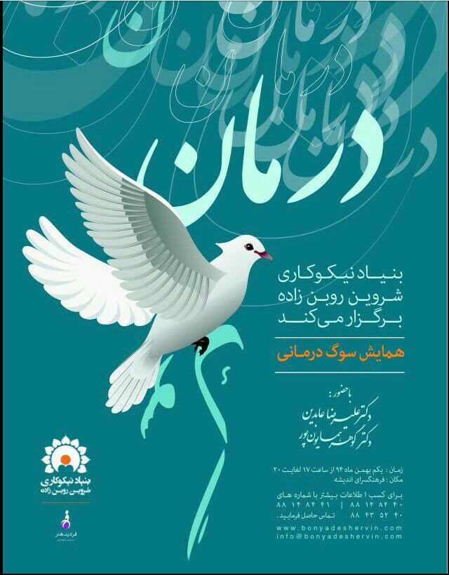 05 ژانویه اطلاعیه ها پایان فقط یک آغاز است ژانویه 5, 2016 توسط bonyad_admin بنیاد نیكوكاری شروین روبن زاده برگزار می كند: " پایان فقط یک آغاز است"با حضور سركار خانم زاهدی، زمان: چهارشنبه 16دی ماه از سا... ادامه مطلب